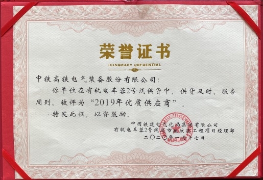 bw必威西汉姆联官方网站公司接连被6个项目部评为“2019年度优质供货商”。公司被中铁建电气化局有轨电车蓉2号线及市政改造工程项目经理部评为“2019年优质...