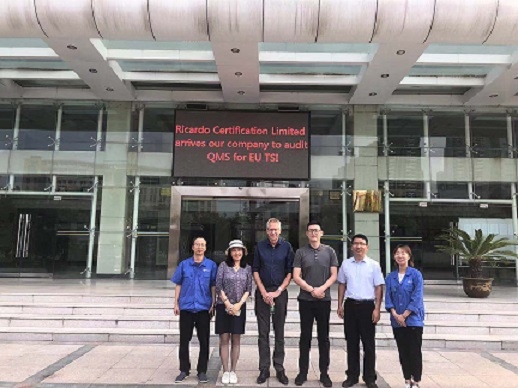 2019年9月5日上午,里卡多认证公司一行三人莅临公司进行欧盟TSI标准QMS审核认证工作,公司总经理张厂育、副总经理陈永瑞、副总经理李忠齐...
