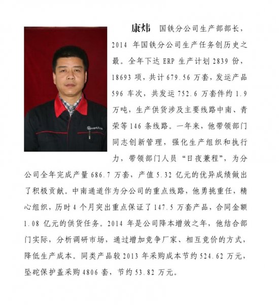 2014年度公司“十佳”员工简要事迹